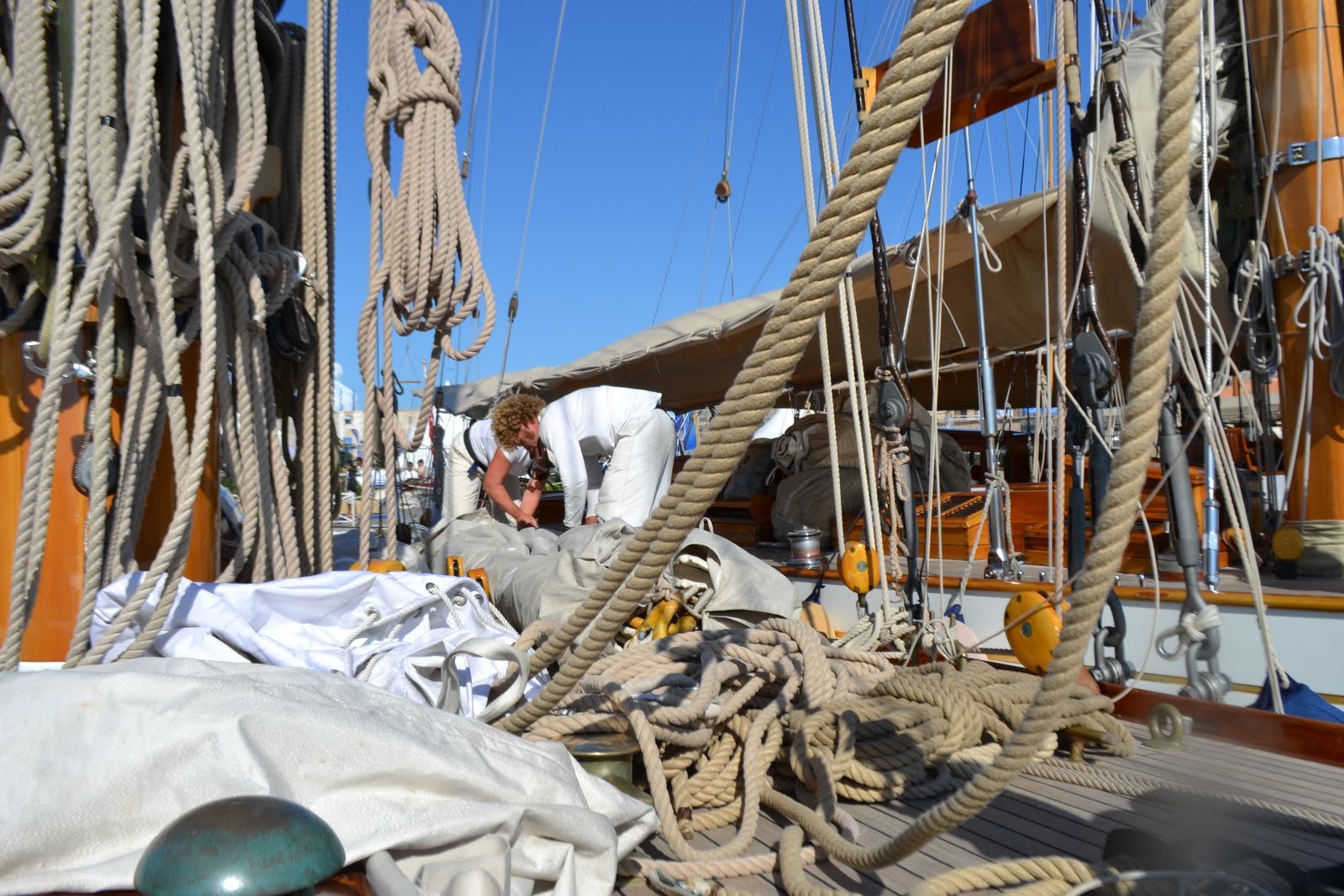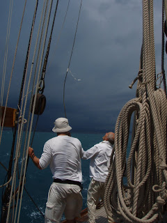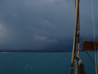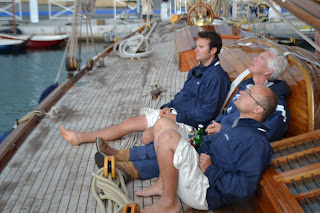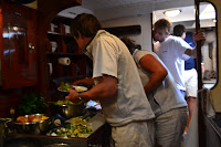 It’s getting hot. It’s getting damn hot. The sort of hot that has you scratching the little tickle of sweat, trickling down between your shoulder blades and begging for the smallest of breezes. We don’t have air conditioning on our boat. My galley has a little fan in it placed above the cooker. It wasn’t the best place to put it. When I’m cooking the heat rises (science that) and the fan conveniently proceeds to blow hot air at me. I tend to melt unattractively in a slow but increasing fashion as lunch or dinner approach. When I give the Mariquita ‘Whoop-Whoop’, for meal times, the crew rush down below for food as quickly as I rush up on deck for some cool air. How glamorous I must look as I gasp for air, red faced and flapping my tee-shirt in the vain attempt to cool down; usually between two huge plastic motor yachts draped with beautifully reclining, bikinied, women glowing ever-so-delicately.
